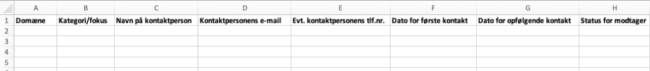 Med disse forskellige tiltag vil du efterhånden have en lang liste med mulige modtagere. For at gøre det så overskueligt som muligt er det en fordel at lave system i det. Det kan for eksempel laves i et Excel-ark.